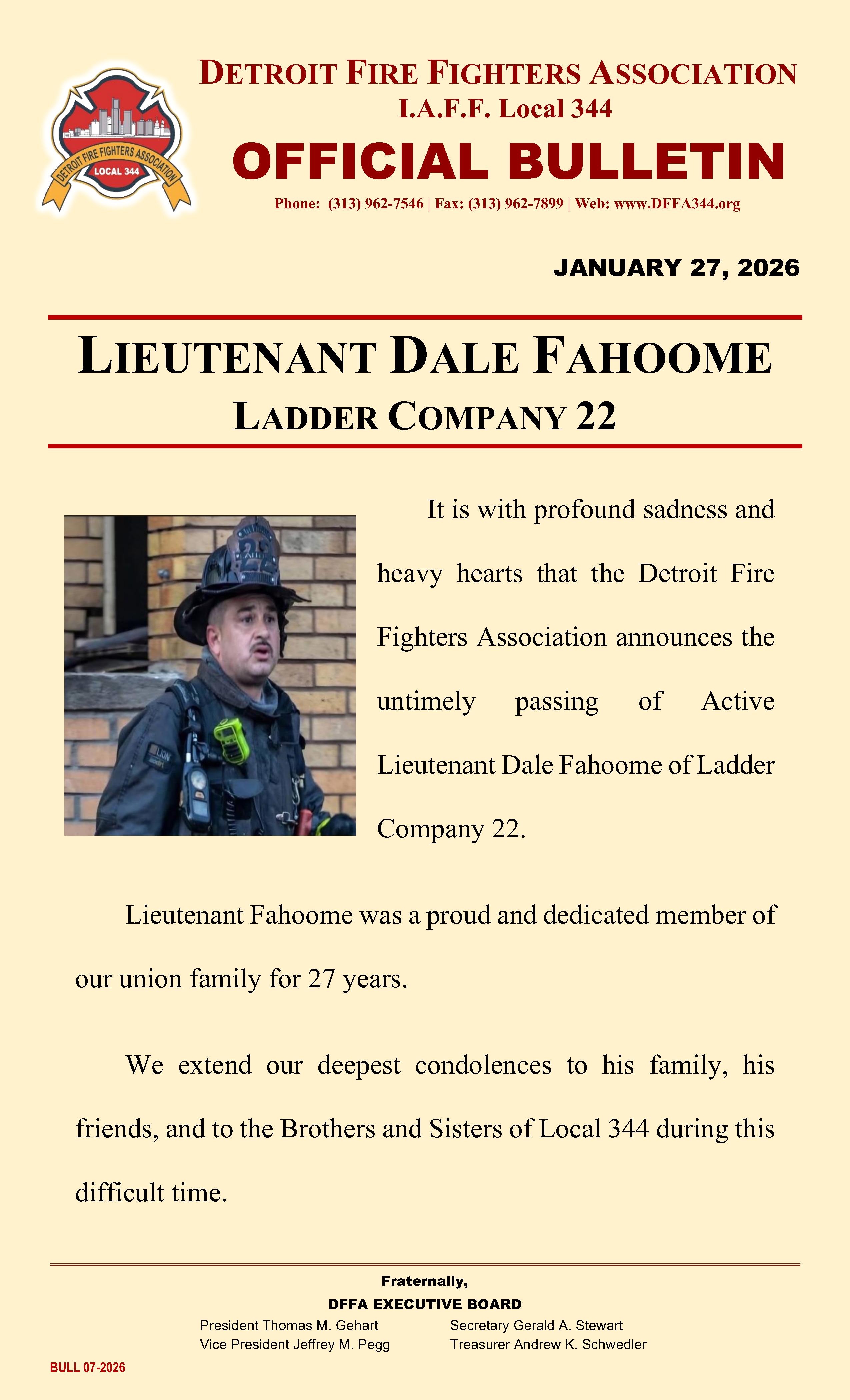 The Detroit Fire Fighters Association, Local 344, respectfully shares the funeral arrangements for Brother Patrick Trout as we come together to honor his life, and service to our department and community. Read More...